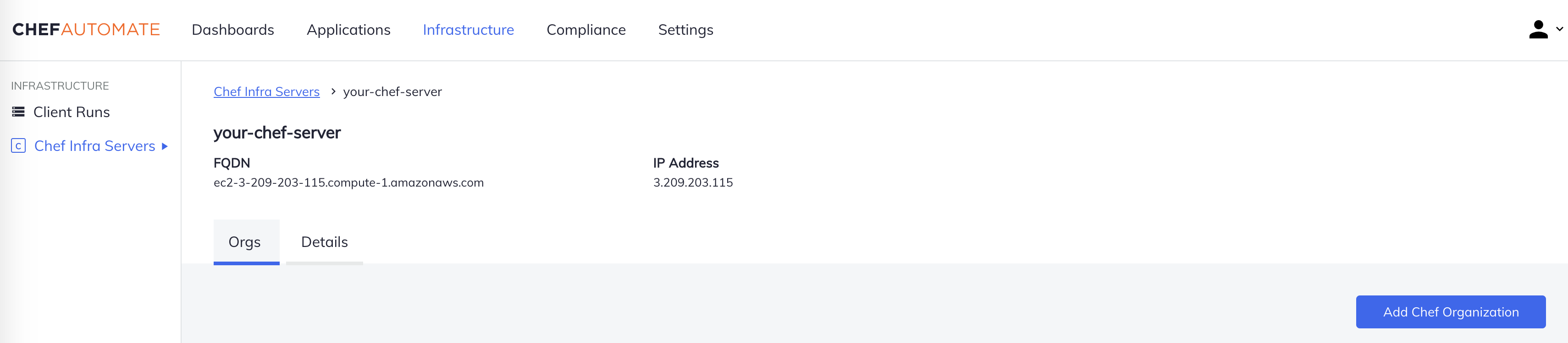 1. Add Chef-Server Details, select the Add Chef Infra Server Button.